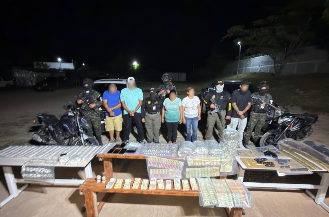 También se decomisaron cinco armas de grueso calibre, municiones, vehículos, motocicletas y 430 mil lempiras y más de dos mil dólares.