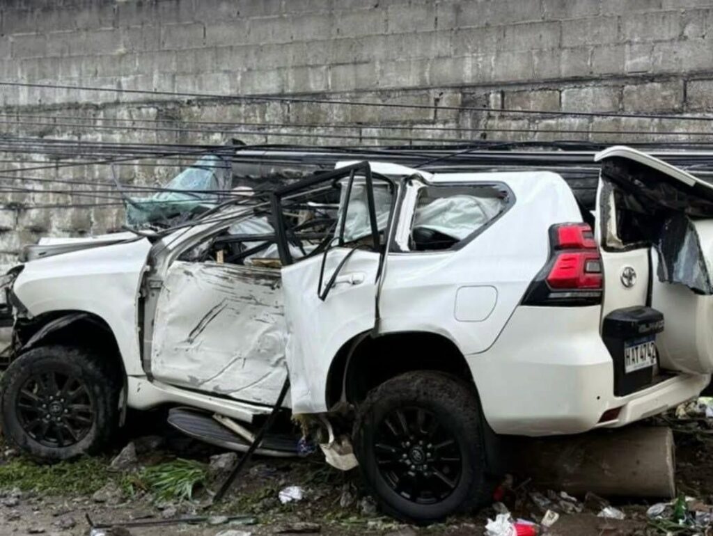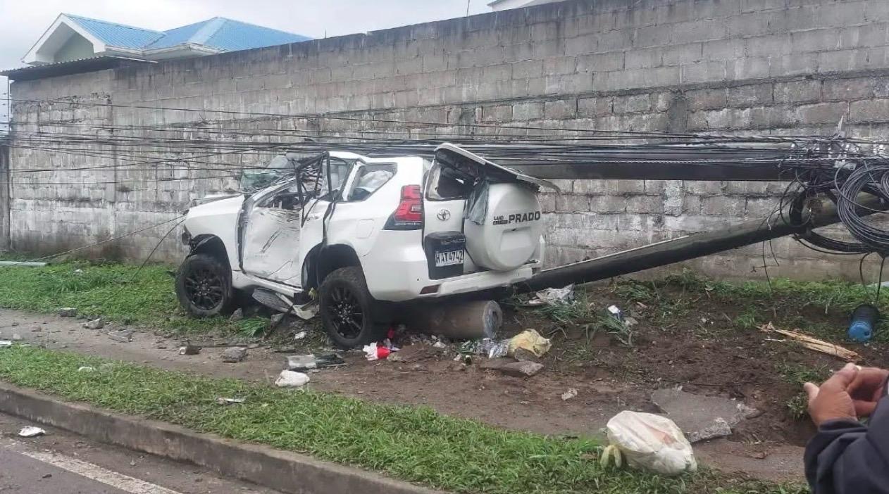 El hecho ocurrió cuando una camioneta blanca, marca Toyota Prado, se salió de la vía e impactó violentamente contra un poste del tendido eléctrico, el cual quedó encima del vehículo tras el choque.