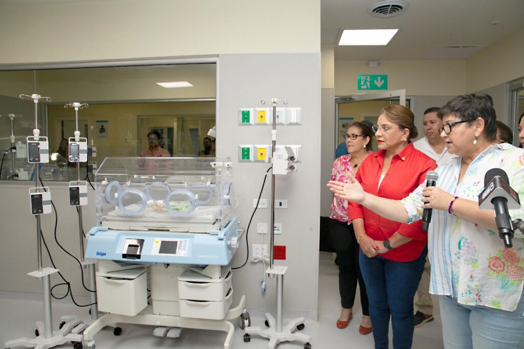 Con una inversión total de más de 91 millones de lempiras y con el objetivo de fortalecer la atención materno infantil la presidenta Xiomara Castro inauguró una moderna Sala de Unidad de Cuidados Intensivos Neonatales en el hospital General San Francisco en Juticalpa, Olancho.
